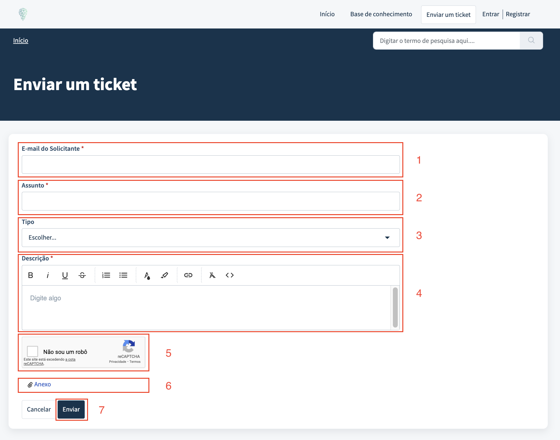 - Insira anexos ao ticket. Muito importante para facilitar a tratativa pelo nosso time. Seja imagem, vídeo ou arquivo.